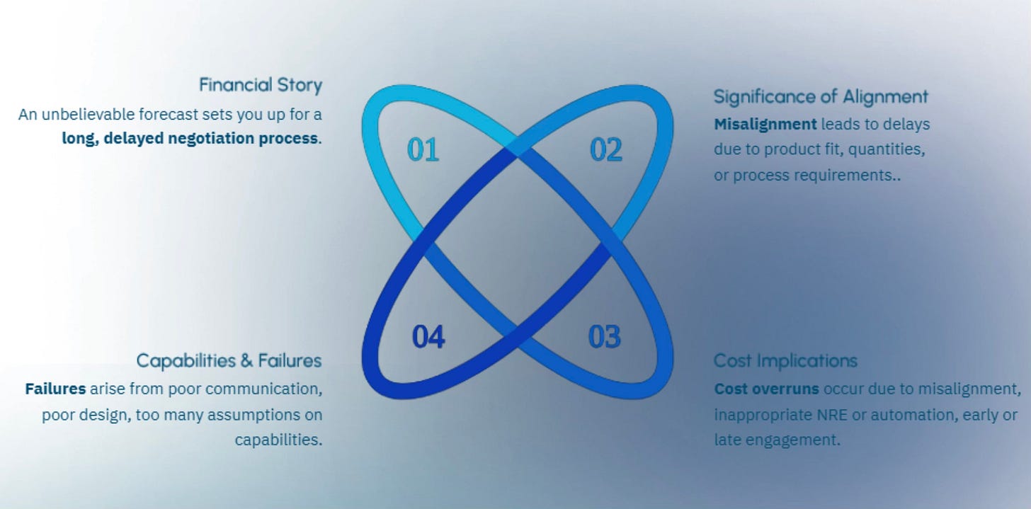 Supply chain individuals are measured on cost reduction. They negotiate aggressively, push for the lowest quotes, and prioritize landed cost above everything else. When parts arrive with quality issues, communication breaks down, or lead times slip, engineers inherit the mess. The supply chain team has already moved on to the next negotiation. This dynamic systematically undervalues the factors engineers know matter: responsive communication, technical capability, quality systems alignment, and realistic capacity planning. The problem compounds when supply chain uses RFQ processes designed for commodity purchases. They send identical specifications to ten manufacturers, evaluate responses purely on price, and select the winner without technical input. Engineers discover problems months later during technology transfer when the selected manufacturer lacks the capabilities needed or when quoted prices bear no resemblance to actual production costs.