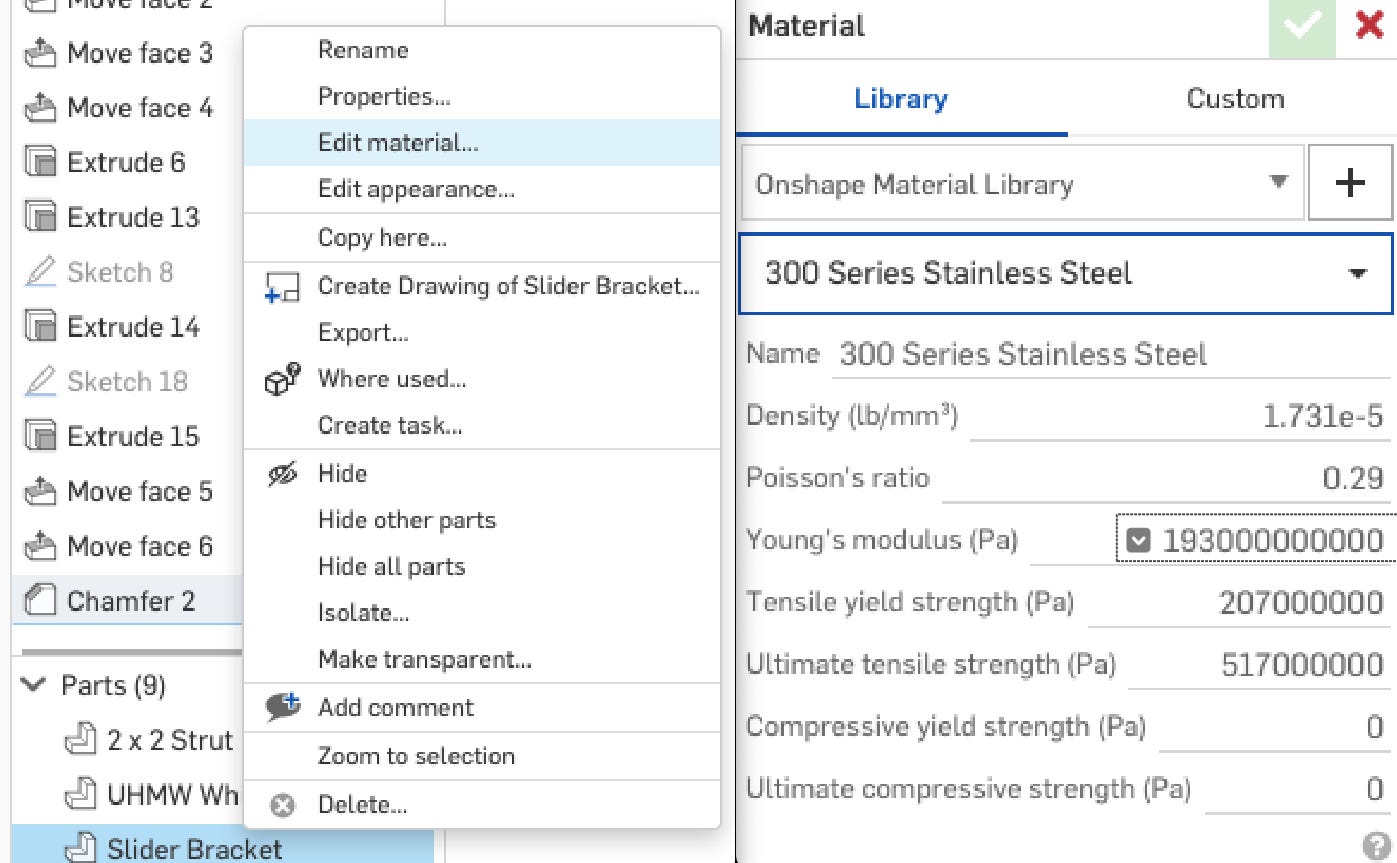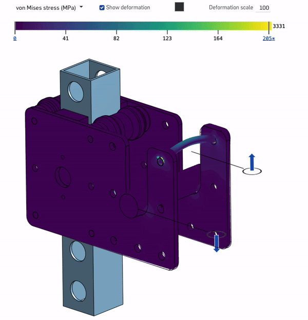 In Onshape, there basically are no meshes! Fortunately, I found Onshape’s simulation capabilities to be very generous in terms of convergence. Convergence means that the software thinks it has found a passable solution. This cannot occur if parts are flying away (if unconstrained properly) or if the stress far exceeds the ultimate strength of the material. Onshape has a cool feature where it displays iteration results even while it works towards a convergent solution, so you can literally watch the results refine as the model moves toward ultimate covergance. The upside, is that you will almost always be able to get a model that has results relatively easy with a proper setup. On the downside, it becomes much more difficult to refine the mesh or remove point discontinuities for further tuning/accuracy. Luckily, if that further accuracy is required, you can still import the mesh from elsewhere as desired and run the analysis like normal.
