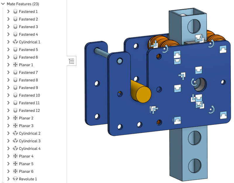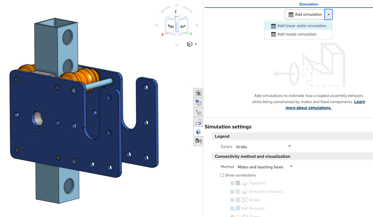 When working with assemblies, contact sets tell the software how parts interact—whether they’re bonded together, sliding against each other, or can separate under load. Different types of contacts, such as bonded, sliding, and frictional, simulate real-world interfaces between parts. Note that there are many different names and types for these contacts depending on the simulation software you are using. Onshape, for example, appears to use “mates” to dictate part interactions.